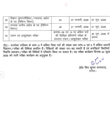 UKPSC ने कुल छह प्रमुख भर्ती परीक्षाओं का परीक्षा कैलेंडर जारी किया है।