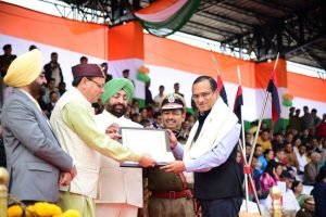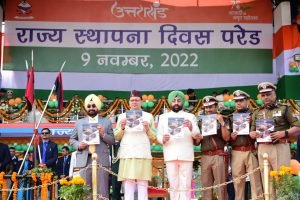 उत्तराखण्ड राज्य स्थापना दिवस पर आयोजित कार्यक्रम में सीएम धामी समेत राज्यपाल ने की शिरकत।
