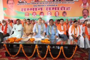 उधम सिंह नगर/रुद्रपुर – मुख्यमंत्री पुष्कर सिंह धामी ने शनिवार को बिगवाड़ा स्थित पार्टी कार्यालय पहुॅचकर ’’आपातकाल के दौरान लोकतंत्र की रक्षा हेतु संघर्ष करने एंव जेलों की यातनाएं सहने वाले लोकतंत्र सेनानियों के सम्मान समारोह कार्यक्रम में बतौर मुख्य अतिथि प्रतिभाग किया। कार्यक्रम में 27 लोकतंत्र सेनानियों और उनके परिजनों को सम्मानित किया गया।