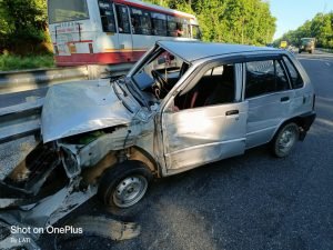 सड़क हादसा: रोडवेज और कार में हुई जबरदस्त भिड़ंत।