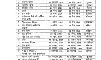 देहरादून। नए साल में मिलेगी 31 छुट्टियां, कैलेंडर जारी। विभिन्न श्रेणियां में कार्मिकों को 27 से 31 अवकाश मिलेंगे। नए साल में 25 सार्वजनिक अवकाश मिलेंगे।...