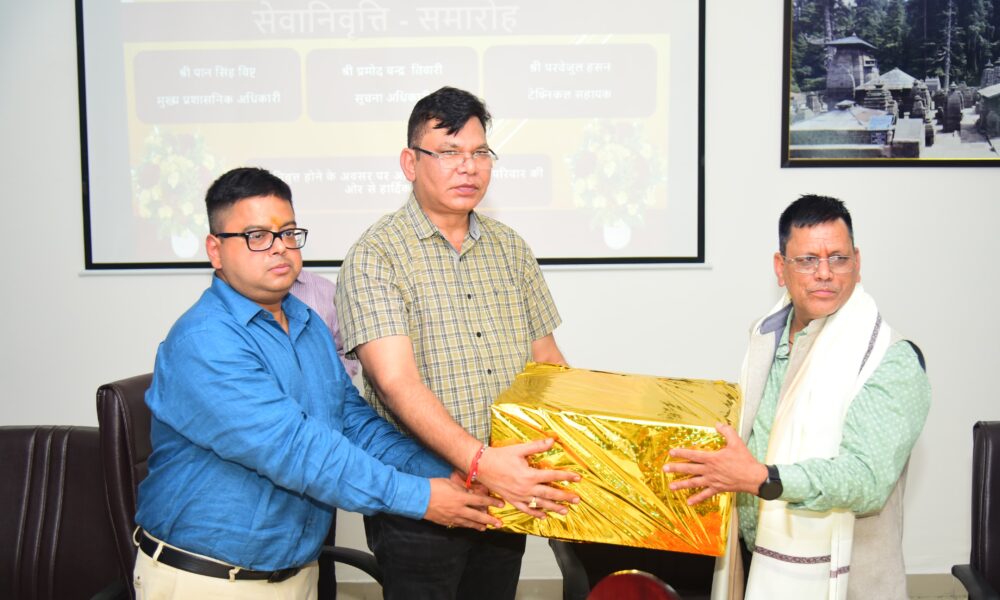 देहरादून – सूचना एवं लोक संपर्क विभाग उत्तराखण्ड में अधिवर्षता आयु पूरी करने पर मुख्य प्रशासनिक अधिकारी पान सिंह बिष्ट, सूचना अधिकारी प्रमोद चंद्र तिवारी और टेक्निकल...
