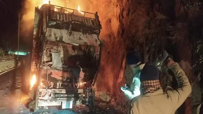 भवाली में कैंटर में लगी आग, सवार तीन लोग बाल-बाल बचे, मचा हड़कंप !