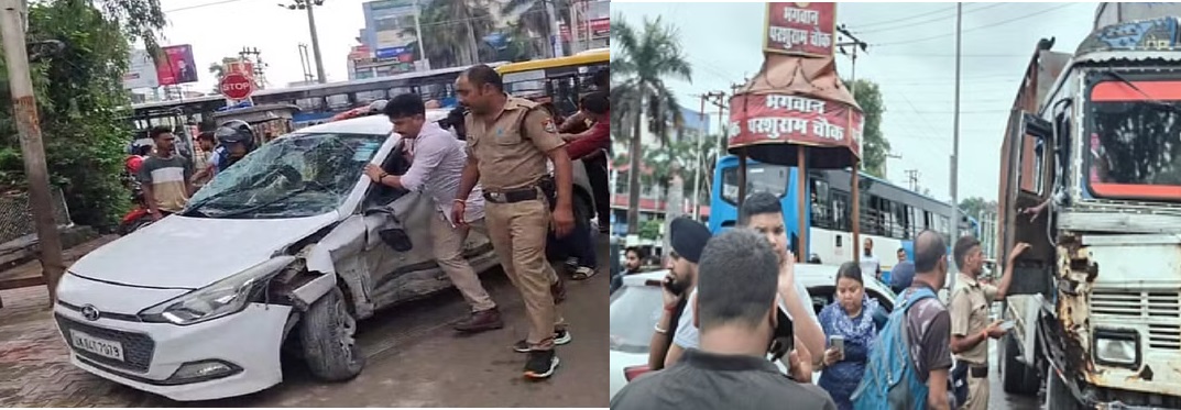 बड़ा हादसा होने से टला: नो एंट्री में घुसे ट्रक ने कार को पीछे से मारी टक्कर, कार में पांच लोग थे सवार।