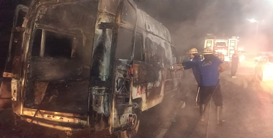 सूचना मिलते ही दमकल विभाग की टीम मौके पर पहुंची और आग पर काबू पाया गया, लेकिन तब तक एंबुलेंस पूरी तरह जलकर खाक हो चुकी थी।