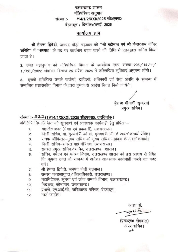 बद्री-केदार मंदिर समिति को मिला नया नेतृत्व: हेमंत द्विवेदी अध्यक्ष, दो उपाध्यक्षों की भी नियुक्ति…