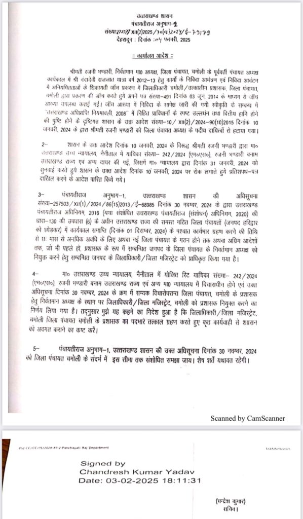 #ChamoliDistrictPanchayat, #RajniBhndari, #GovernmentAction, #DMasAdministrator, #PoliticalChange