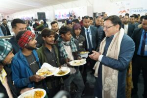 देहरादून – मुख्यमंत्री पुष्कर सिंह धामी ने रविवार को एफ.आर.आई. में सूचना एवं लोक सम्पर्क विभाग द्वारा प्रकाशित विकास पुस्तिका विमोचन के पश्चात पिछले एक सप्ताह से ग्लोबल इंवेस्टर्स समिट की व्यवस्थाओं से जुड़े श्रमिकों एवं पर्यावरण मित्रों के साथ भोजन कर उनके अथक परिश्रम की सराहना कर धन्यवाद दिया।