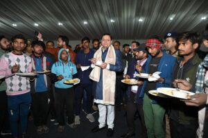 मुख्यमंत्री पुष्कर सिंह धामी ने श्रमिकों के साथ किया भोजन, परिश्रम की सराहना कर दिया धन्यवाद।