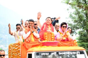 उत्तरकाशी – मुख्यमंत्री पुष्कर सिंह धामी ने मंगलवार को डिग्री कॉलेज मैदान, चिन्यालीसौड़, उत्तरकाशी में आयोजित जनसभा में प्रतिभाग किया। मुख्यमंत्री पुष्कर सिंह धामी ने सभी को स्वागत करते हुए कहा कि जनता का समर्थन भाजपा प्रत्याशी माला राज्यलक्ष्मी शाह जी के साथ सीधा प्रधानमंत्री को जाने वाला है। यह चुनाव ऐतिहासिक चुनाव है। प्रधानमंत्री ने जो हर पल हर क्षण देशवासियों को समर्पित किया है उसका प्रतिफल, उन्हें तीसरी बार देश का प्रधानमंत्री बनाकर देना है। माला राज्यलक्ष्मी शाह ने निरंतर क्षेत्र की सेवा की है। आज देश में हर कोई कह रहा है मोदी फिर से प्रधानमंत्री बनने वाले हैं।