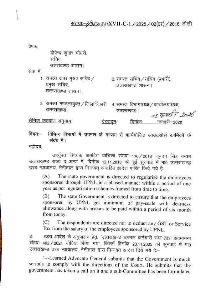 उपनल कर्मियों के समान कार्य,समान वेतन को लेकर शासनादेश जारी