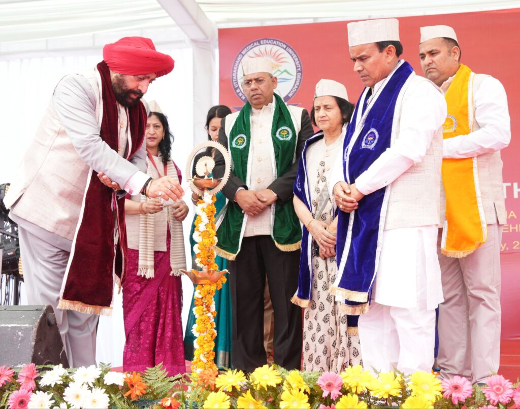 उन्होंने कहा कि प्रदेश सरकार लगातार चिकित्सा क्षेत्र में बेहतर कार्य कर रही है। अगले डेढ़-दो वर्षों में पिथौरागढ़ और रुद्रपुर मेडिकल कॉलेज बनने से प्रदेश में कुल सरकारी मेडिकल कॉलेजों की संख्या 8 हो जाएगी, जिससे एमबीबीएस करने वाले छात्रों की संख्या एक हजार से अधिक होगी। प्रदेश में 98 नर्सिंग कॉलेज और 100 से अधिक पैरामेडिकल कॉलेज हैं। राज्य सरकार 450 नए डॉक्टर्स नियुक्त करने जा रही है। उन्होंने कहा कि तकनीकी ज्ञान के अपने विभिन्न क्षेत्रों में विशेष योग्यता हासिल कर उपाधि प्राप्त कर रहे छात्र-छात्राएं देश ही नहीं बल्कि दुनिया के विभिन्न औद्योगिक क्षेत्रों में अपना तथा प्रदेश का नाम गौरवान्वित करेंगे।