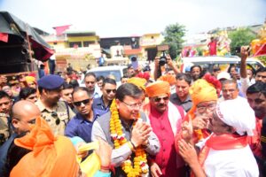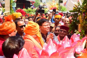 देहरादून – मुख्यमंत्री पुष्कर सिंह धामी ने शनिवार को सहारनपुर चौक, देहरादून में टपकेश्वर महादेव की भव्य शोभायात्रा में प्रतिभाग किया। मुख्यमंत्री पुष्कर सिंह धामी, टपकेश्वर महादेव मंदिर के महंत श्री कृष्णा गिरी महाराज एवं महंत दिगम्बर भरत गिरी महाराज ने पूजा-अर्चना के साथ शोभायात्रा का शुभारंभ किया।