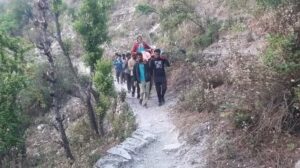 भीमताल/नैनीताल – सड़क सुविधा के अभाव में आए दिन मरीजों की जान पर बन आती है। धारी ब्लॉक की ग्राम पंचायत बबियाड़ के बिरसिंग्या में बुधवार को महिला की तबीयत बिगड़ने के बाद गांव तक सड़क नहीं होने से डोली के सहारे पांच किमी दूरी तय कर महिला को मुख्य मार्ग तक लाना पड़ा। वहां से महिला को पदमपुरी अस्पताल ले जाया गया। इस दौरान ग्रामीणों में सिस्टम के प्रति काफी रोष था।