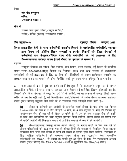 धामी सरकार ने 2.50 लाख से अधिक कर्मचारियों को 58 प्रतिशत की दर से महंगाई भत्ता जारी करने के आदेश जारी कर दिए हैं। बता दें कि कर्मचारियों को एक जुलाई से 31 अक्तूबर तक डीए का नकद भुगतान किया जाएगा। इसके साथ ही अराजपत्रित कर्मचारियों को बोनस का लाभ दिया जाएगा। इस संबंध वित्त विभाग ने आदेश जारी कर दिए हैं।