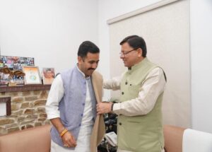 हिमाचल प्रदेश सरकार में कैबिनेट मंत्री विक्रमादित्य सिंह और माता पूर्व लोकसभा सांसद प्रतिभा सिंह ने सीएम धामी ने की मुलाकात।