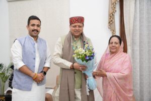 हिमाचल प्रदेश सरकार में कैबिनेट मंत्री विक्रमादित्य सिंह और माता पूर्व लोकसभा सांसद प्रतिभा सिंह ने सीएम धामी ने की मुलाकात।