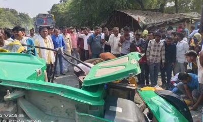 हाईवे पर कंटेनर ने ट्रैक्टर बोगी को टक्कर मारी, 1 की मौत, 1 घायल