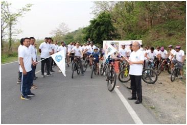 इस साइकिल मैराथान का शुभारंभ सुबह 6.30 बजे महाराणा प्रताप चौक से जीएसटी आयुक्तालय के प्रधान आयुक्त श्री शुभ चिंतन द्वारा झंडी दिखाकर किया गया और लगभग 5 किलोमीटर की दूरी तय करते हुए यह साइकिल मैराथन मालदेवता रोड पर पहुंचकर संपन्न हुई।