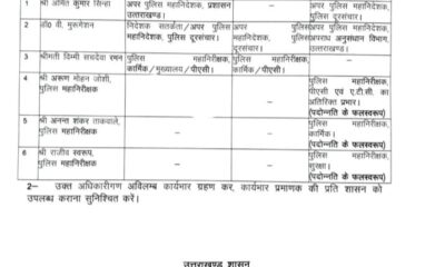 देहरादून – भारतीय पुलिस सेवा के अधिकारियों को उनके नाम के सम्मुख अंकित स्तम्भ-3 में उल्लिखित पद से, स्तम्भ-4 में उल्लिखित पदभार से अवमुक्त करते हुए...