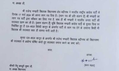चमोली जिले से बड़ी खबर। बद्रीनाथ विधायक राजेंद्र भंडारी ने कांग्रेस पार्टी से दिया इस्तीफा। प्रदेश अध्यक्ष करण माहरा को सौप अपना इस्तीफा। बीजेपी में शामिल...
