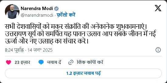 पीएम मोदी ने मकर संक्रांति पर देशवासियों को दी शुभकामनाएं , विविधता में एकता की भावना को दिया बढ़ावा….