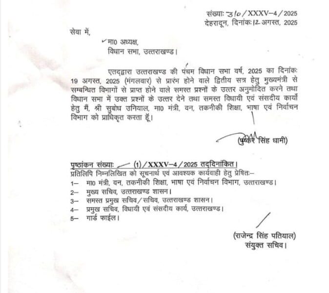 देहरादून: उत्तराखंड विधानसभा अध्यक्ष ऋतु खंडूड़ी भूषण ने सोमवार को ग्रीष्मकालीन राजधानी गैरसैंण के भराड़ीसैंण विधानसभा में 19 अगस्त से शुरू होने वाले मानसून सत्र के...