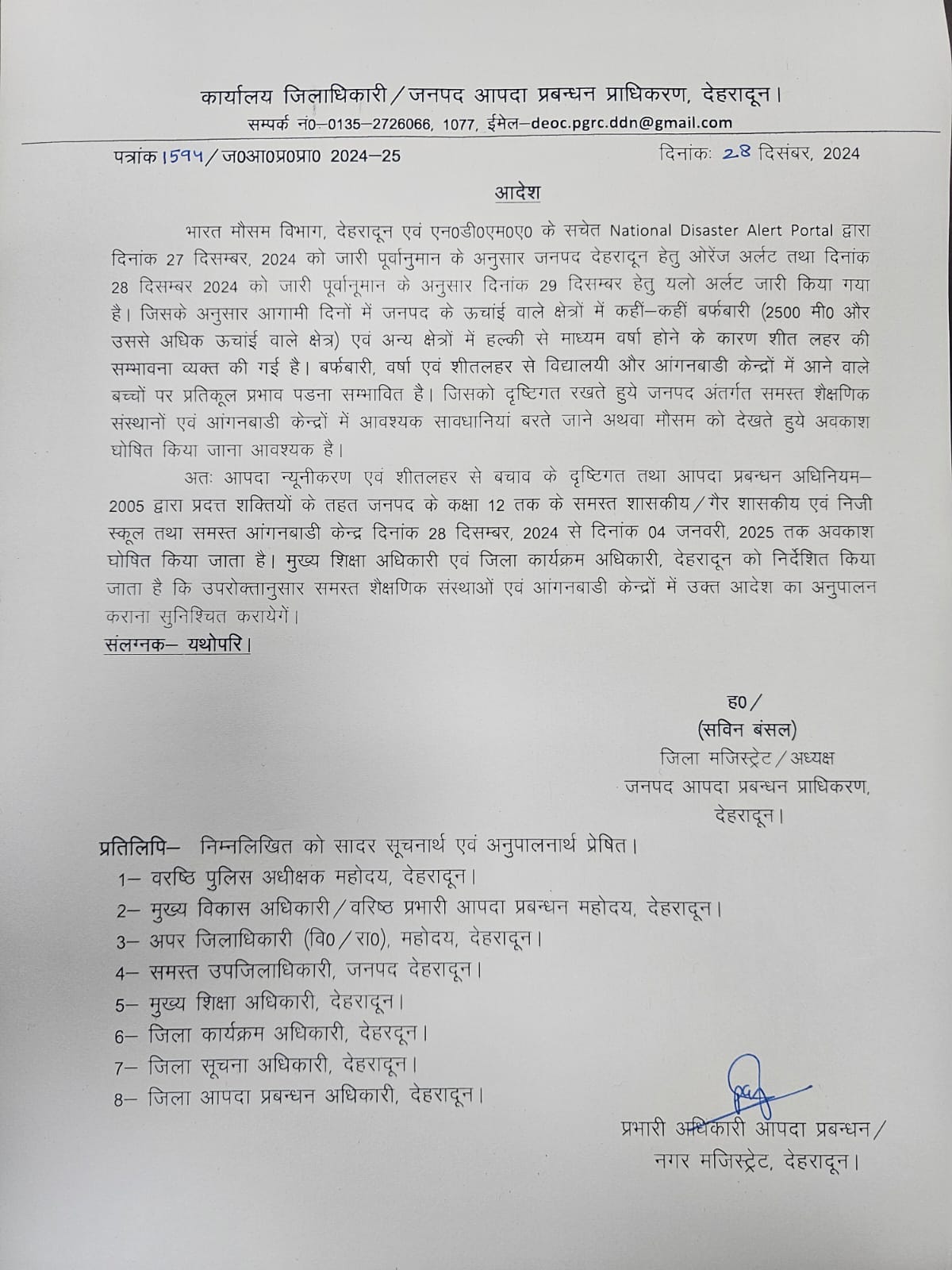 #Dehradun, #Coldwave, #Snowfall, #Schoolholidays, #Weatheralert