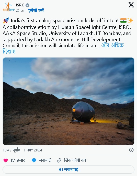 अंतरिक्ष यात्रा की तैयारी: ISRO ने शुरू किया एनालॉग स्पेस मिशन !