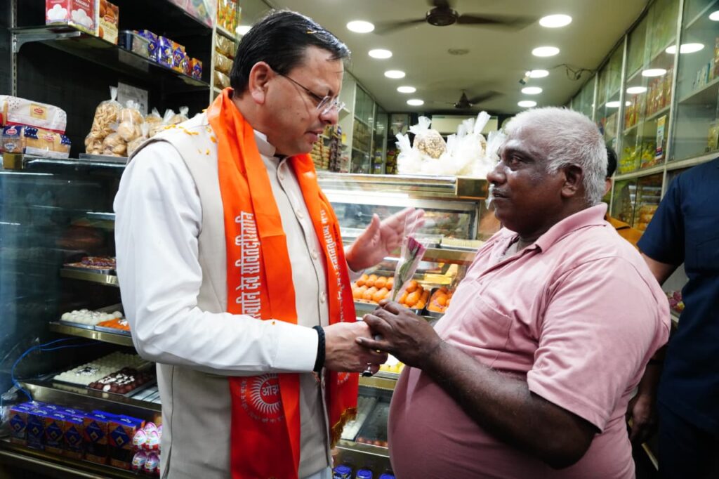मुख्यमंत्री धामी ने सोमवार शाम देहरादून के प्रेमनगर स्थानीय बाज़ार पहुंचकर व्यापारियों से मुलाकात कर नए जी.एस.टी स्लैब के बारे में फीडबैक लिया एवं व्यापारियों से आम जन को भी घटे हुए जी.एस.टी के बारे में जानकारी देने का आग्रह किया।