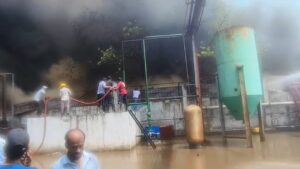 वही कम्पनी जीएम ने बताया कि एकमी इंडस्ट्रीज मे वेल्डिंग का कार्य चल रहा था जिसकी चिंगारी से गोदाम मे पड़े प्लास्टिक के सामान ने आग पकड़ ली…जिसके चलते आग ने भीषण रूप ले लिया वही वेल्डिंग के आरोपों को निराधार बताते हुए कर्मचारियों ने कहा कि कम्पनी मे कोई वेल्डिंग का कार्य नहीं चल था, मौके पर दमखल की टीम पहुंच गयी हैं आग भीषण होने के चलते आग पर काबू नहीं पाया गया…हलाकि आग लगने का सस्पेंस बढ़ता जा रहा हैं आरोप प्रत्यारोप लगातार एक दूसरे पर लगाये जा रहे हैं।