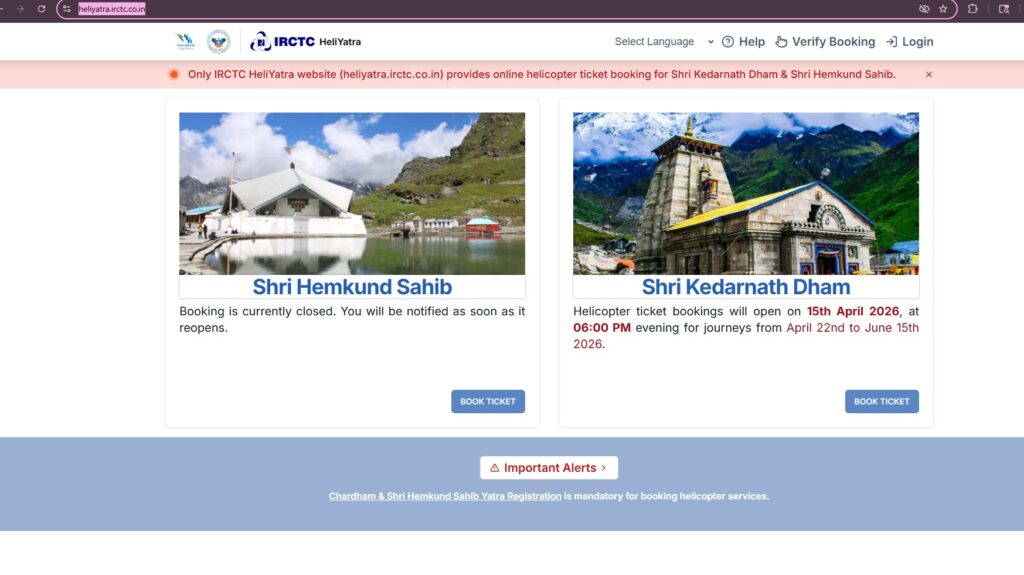 A. टिकट केवल IRCTC HeliYatra Portal पर ही बुक किए जा सकते हैं। किसी अन्य वेबसाइट से बुकिंग मान्य नहीं होगी।