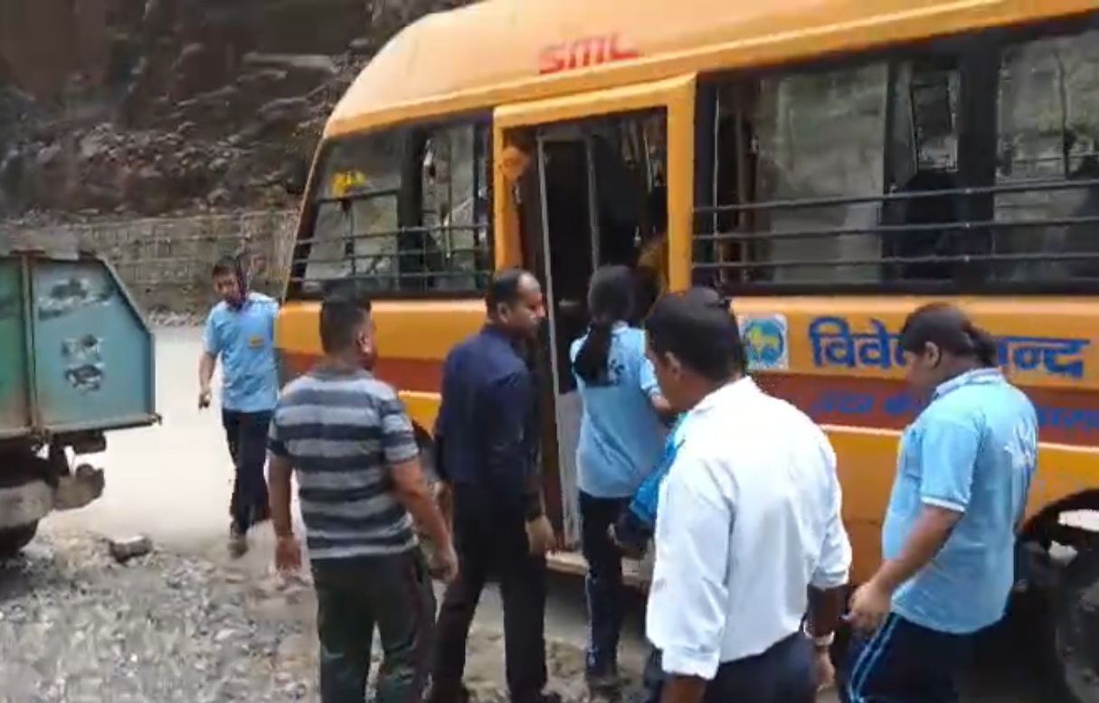 पिथौरागढ़: पिथौरागढ़ जिले के विकासखंड धारचूला के अंतर्गत घटखोला के पास आज विवेकानंद विद्या मंदिर, घटखोला धारचूला की स्कूली बस पर अचानक पहाड़ से पत्थर गिरने की सूचना प्राप्त हुई। सूचना मिलते ही उपजिलाधिकारी धारचूला जितेंद्र वर्मा अपनी टीम के साथ तत्काल मौके पर पहुँचे। उन्होंने घटनास्थल पर पहुँचकर बच्चों और स्टॉफ को सुरक्षित किया और उन्हें सकुशल उनके गंतव्य स्थल एवं घरों तक भेजने की व्यवस्था की। उपजिलाधिकारी ने कहा कि सभी बच्चे पूर्णतः सुरक्षित हैं, किसी भी बच्चे को किसी प्रकार की चोट नहीं आई है और अभिभावकों को सूचित कर उन्हें बच्चों को सौंप दिया गया है।
