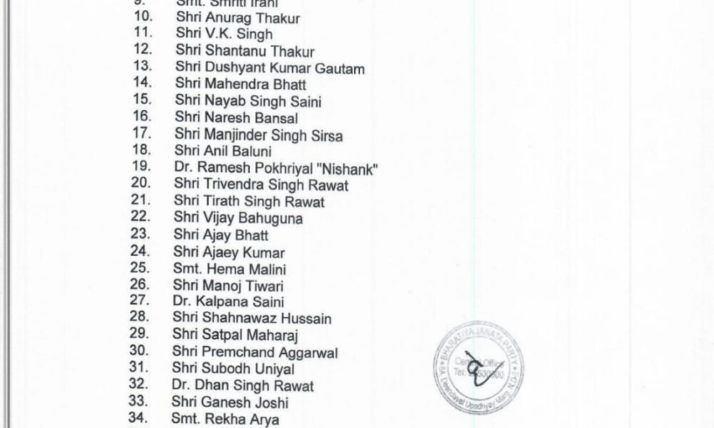 देहरादून – प्रधानमंत्री नरेंद्र मोदी उत्तराखंड में चुनाव प्रचार गरमाएंगे। चुनाव अभियान को गति देने के लिए भाजपा ने 40 स्टार प्रचारकों की सूची जारी की...