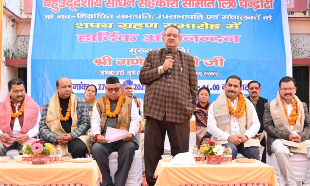 मंत्री गणेश जोशी ने बहुउद्देशीय साधन सहकारी समिति लिमिटेड चन्द्रोटी के नव-निर्वाचित सभापति, उपसभापतियो के शपथ ग्रहण समारोह में किया प्रतिभाग देहरादून: कैबिनेट मंत्री गणेश जोशी...