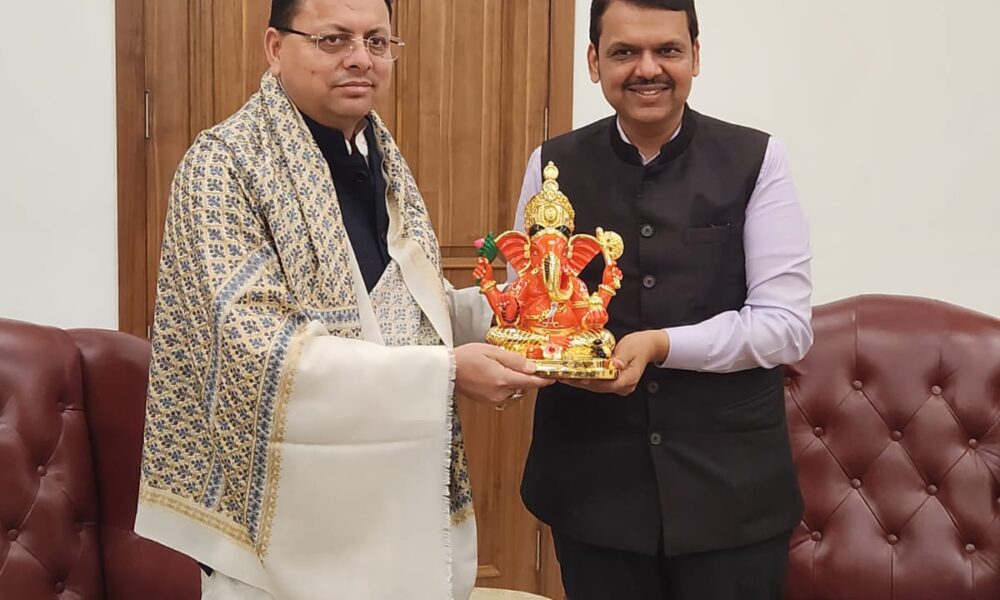सीएम धामी ने महाराष्ट्र के उपमुख्यमंत्री देवेंद्र फंडनविस की मुलाकात, चारधाम यात्रा का दिया न्योता।