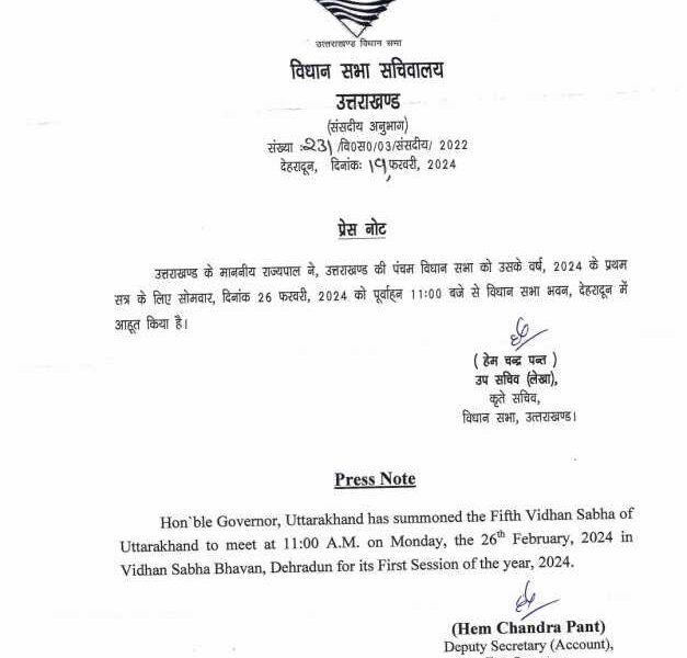 देहरादून ब्रेकिंग। उत्तराखंड से आज की बड़ी खबर आई सामने। आगामी 26 फरवरी से धामी सरकार का बजट सत्र होगा शुरू। विधानसभा सचिवालय ने जारी की...