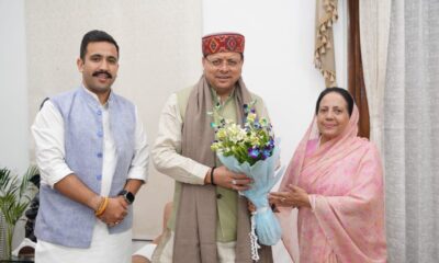 हिमाचल प्रदेश सरकार में कैबिनेट मंत्री विक्रमादित्य सिंह और माता पूर्व लोकसभा सांसद प्रतिभा सिंह ने सीएम धामी ने की मुलाकात।
