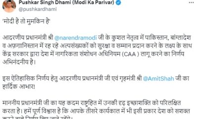 देहरादून – देश में ‘नागरिकता संशोधन अधिनियम’ (सीएए) लागू हो गया है। केंद्र सरकार ने सोमवार शाम को नागरिकता संशोधन अधिनियम को लेकर अधिसूचना जारी कर...