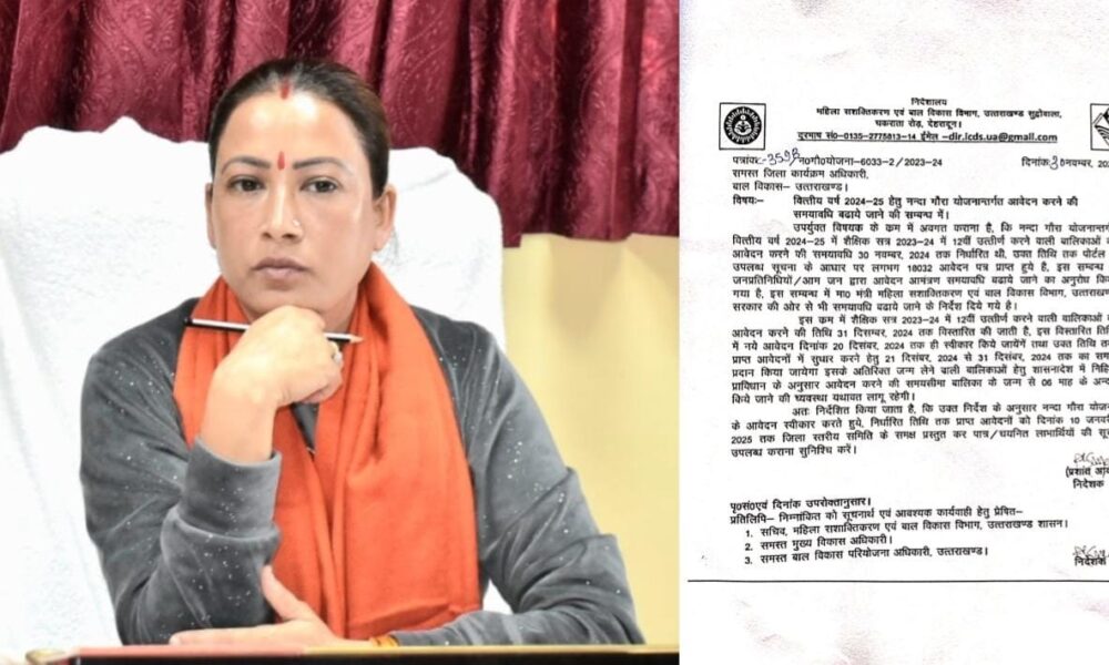 देहरादून : उत्तराखंड में उच्च शिक्षा के लिए आर्थिक सहायता प्रदान करने वाली नंदा गौरा योजना के तहत आवेदन की तारीख को बढ़ा दिया गया है।...