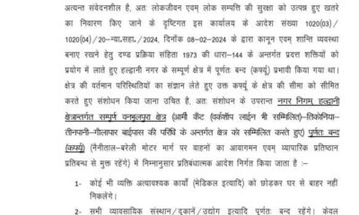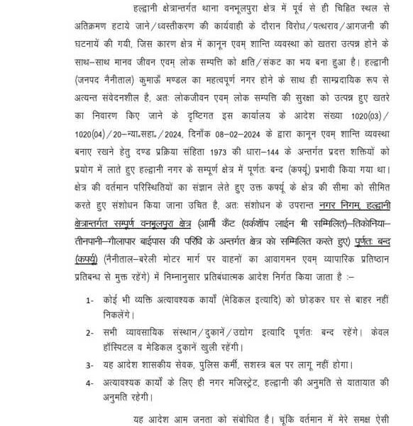कर्फ्यू को लेकर हल्द्वानी में नया आदेश जारी…जाने कहा मिलेगी राहत कहा रहेगा बंद।