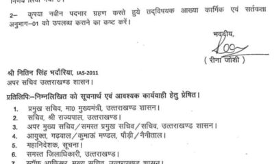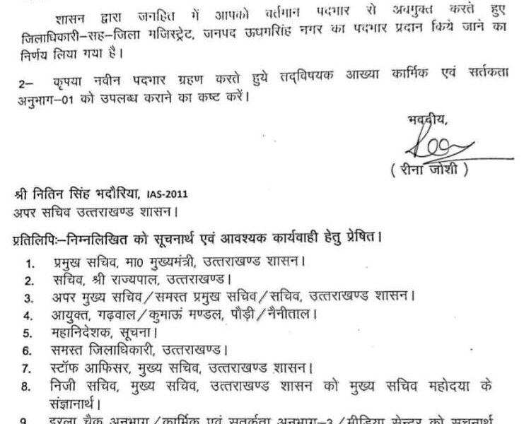 देहरादून: उत्तराखंड शासन ने एक और प्रशासनिक तबादला जारी किया है। वरिष्ठ आईएएस अधिकारी नितिन भदौरिया को उधम सिंह नगर का नया जिलाधिकारी (DM) नियुक्त किया...