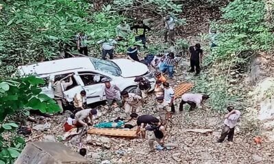 बरातियों से भरी मैक्स सड़क से 70 मीटर नीचे खेतों जा गिरी, 2 की मौत 10 घायल।