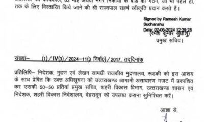 देहरादून ब्रेकिंग न्यूज़ देहरादून – उत्तराखंड शासन ने आधा दर्जन आईएएस अधिकारियों के कार्यक्षेत्र में बड़ा फेरबदल किया गया है। मीनाक्षी सुंदरम को uiidb का अतरिक्त...