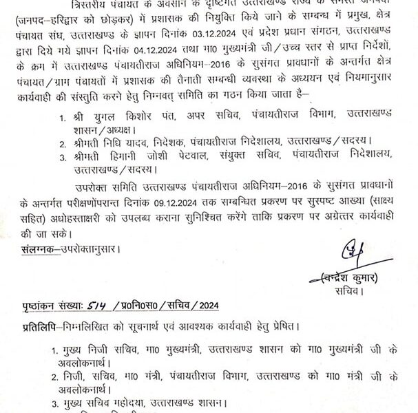 देहरादून। उत्तराखंड के पंचायत राज विभाग ने पंचायत राज एक्ट के तहत प्रधानों, क्षेत्र पंचायत और जिला पंचायत सदस्यों को प्रशासक बनने के संबंध में एक...