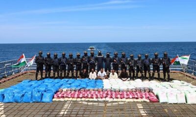 तटरक्षक बलों ने संदिग्ध पाकिस्तानी और ईरानी नागरिक को किया गिरफ्तार, हजारों करोड़ रुपये की कीमत के मादक पदार्थ किए बरामद।