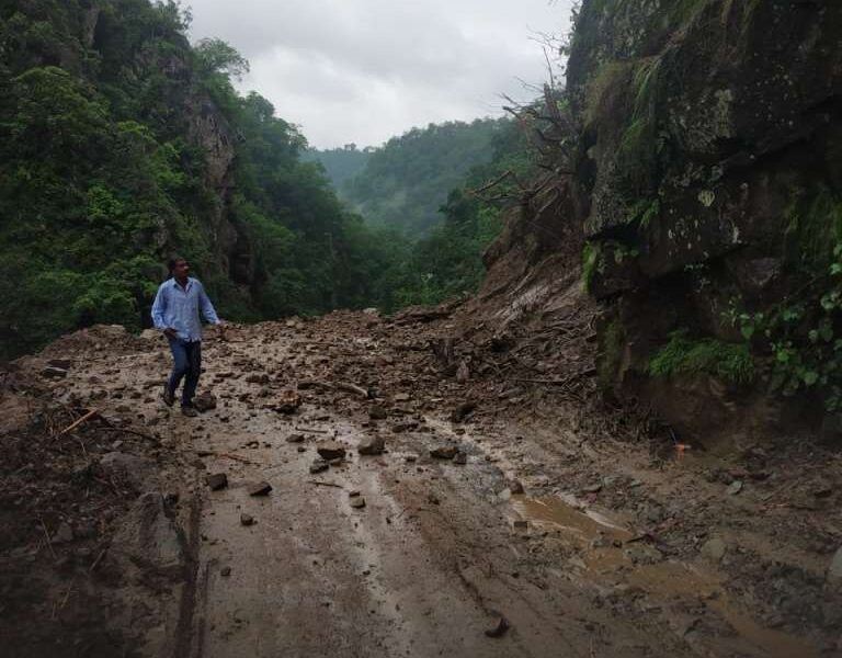 पौड़ी नैशनल हाइवे पर दुगड्डा दुर्गादेवी मंदिर के पास पहाड़ी से बोल्डर गिरने से हाइवे फिर से हुआ बंद, लगातार गिर रहे पहाड़ी से पत्थर।