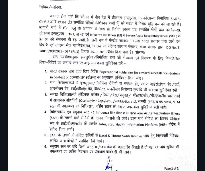 चीन में छोटे बच्चों में फ़ैल रही बीमारी, विश्व स्वास्थ्य संगठन ने सभी देशों को किया अलर्ट, प्रदेश में भी गाइडलाईन हुई जारी।