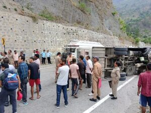 टिहरी हादसा: यात्रियों से भरी बस डिवाइडर से टकराकर सड़क पर पलटी, मची चीख पुकार…एक महिला गंभीर रूप से घायल।