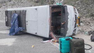 बद्रीनाथ धाम के दर्शन कर लौट रही उड़ीसा के तीर्थयात्रियों की बस नियंत्रित होकर सड़क पर पलटी, 24 लोग थे सवार।
